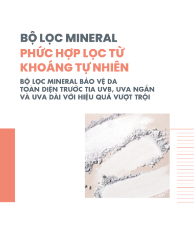 Phức hợp chống nắng vô cơ gồm Titanium Dioxide với kích thước tiểu phân tử giúp bảo vệ làn da khỏi tác hại từ tia UV gây ra.